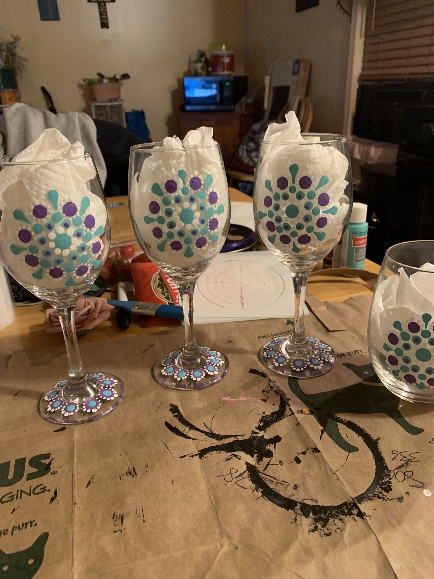 Wine glasses I can do different designs and different colors to meet your specifications taking orders $10 a pair