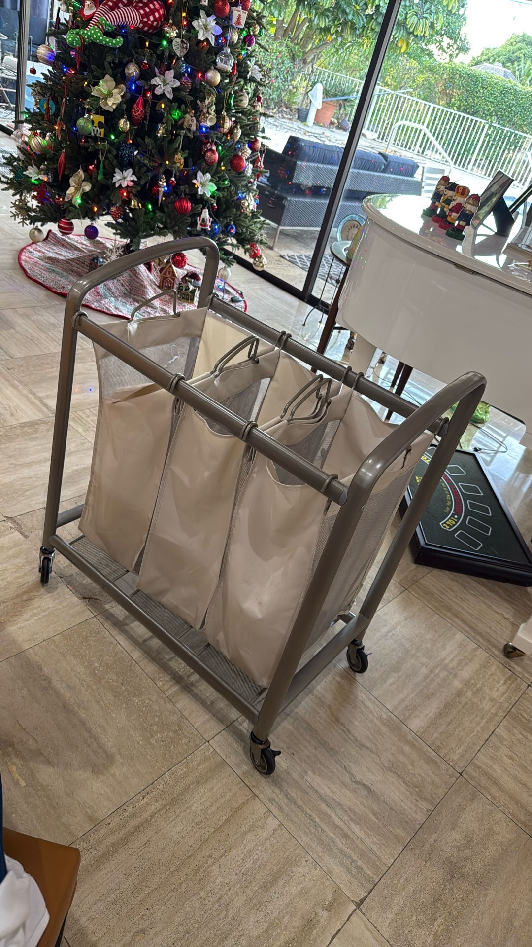 Normal wear and tear barely used. One bag is torn, can be repaired. Frame is in perfect condition.