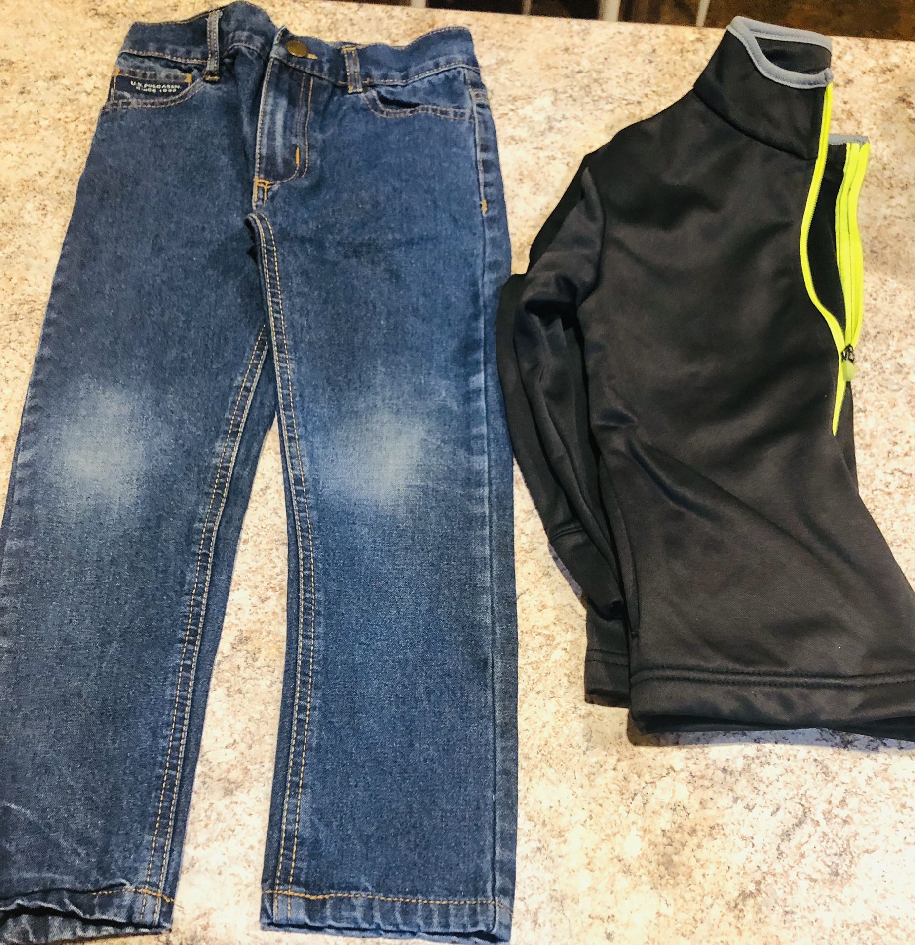 Quality clothes for a great price! Boys jacket and jeans set in great condition! Includes: RBX black and neon jacket with zipper pocket on the sleeve Boys US Polo Assn Blue Jeans with 2 back and 2 side pockets Boys Size 5 Both for just $10!