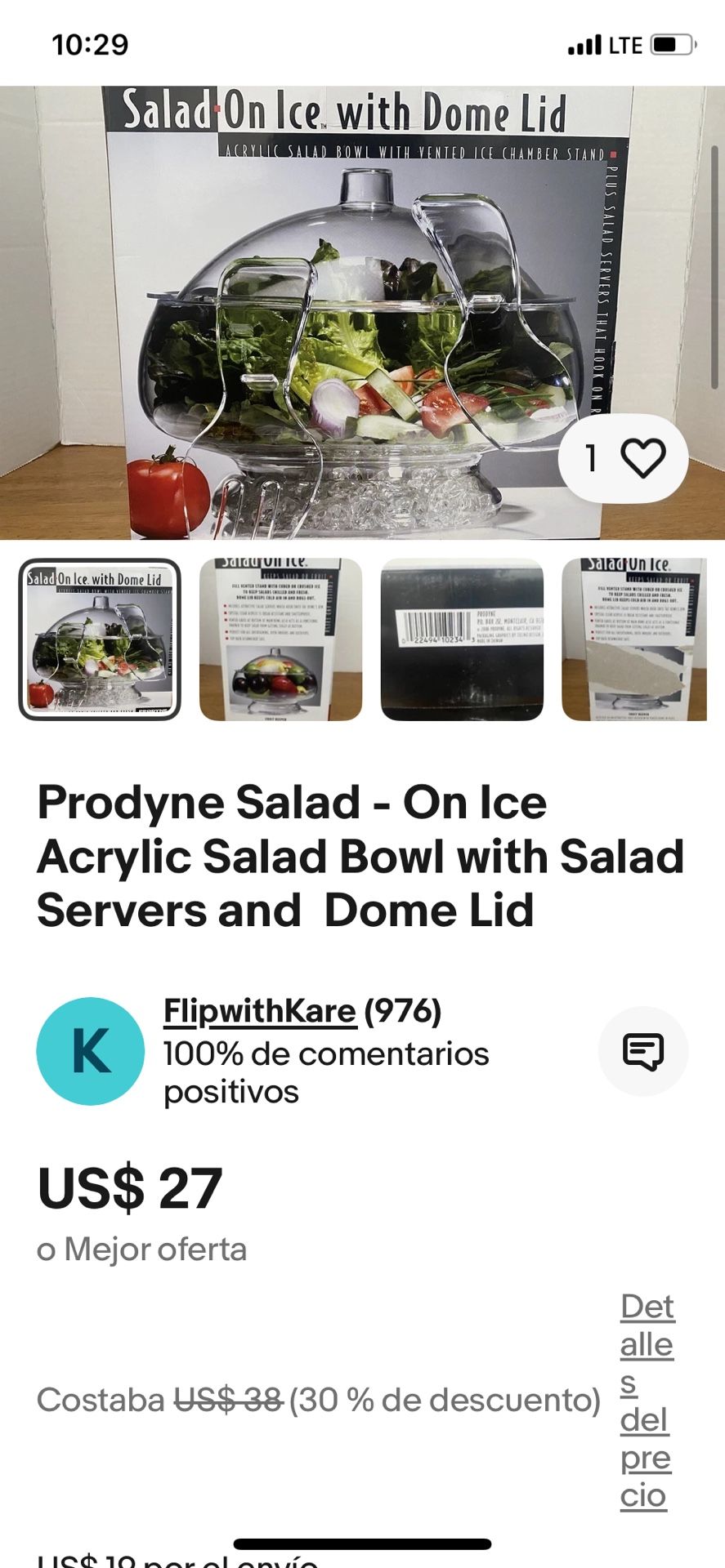 Prodyne Salad - On Ice Acrylic Salad Bowl with Salad Servers and Dome Lid
