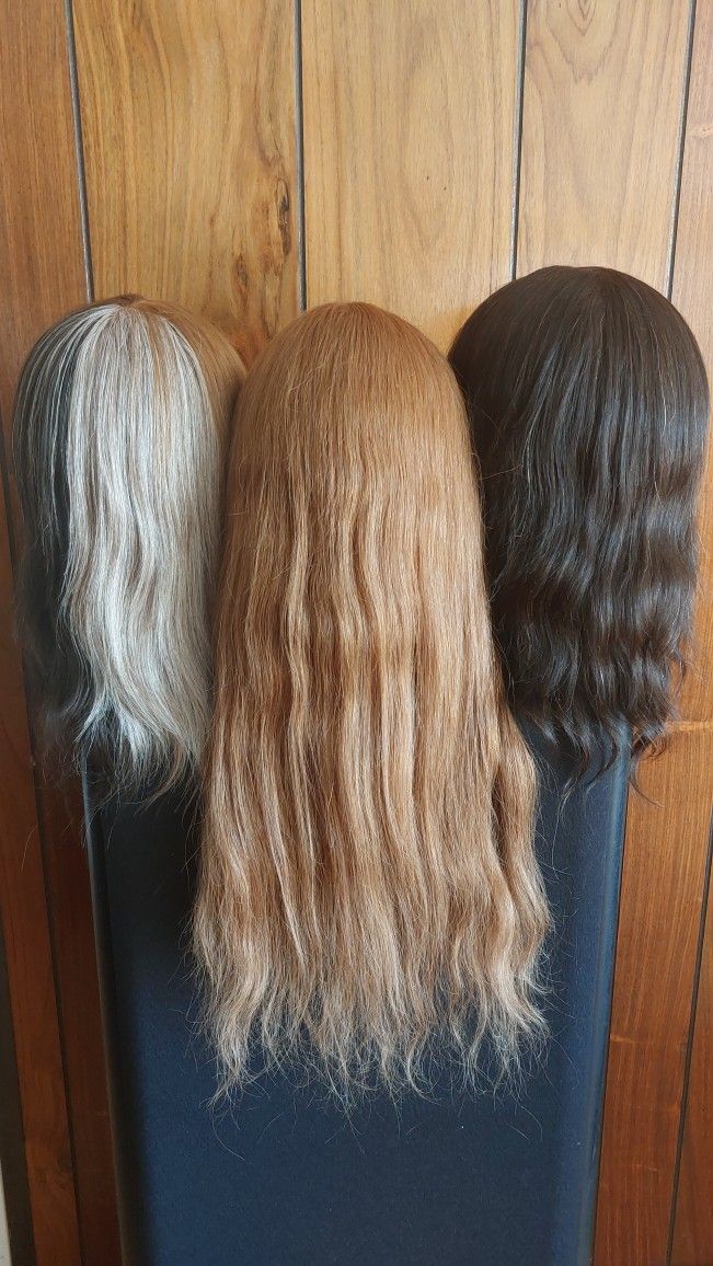 3 cosmetology doll heads one doll to practice hair coloring, one with long hair for up do's, and one to practice men's hair cut. All doll hairs are virgen & were never cut or colored.long har doll is 23 inches long approx.