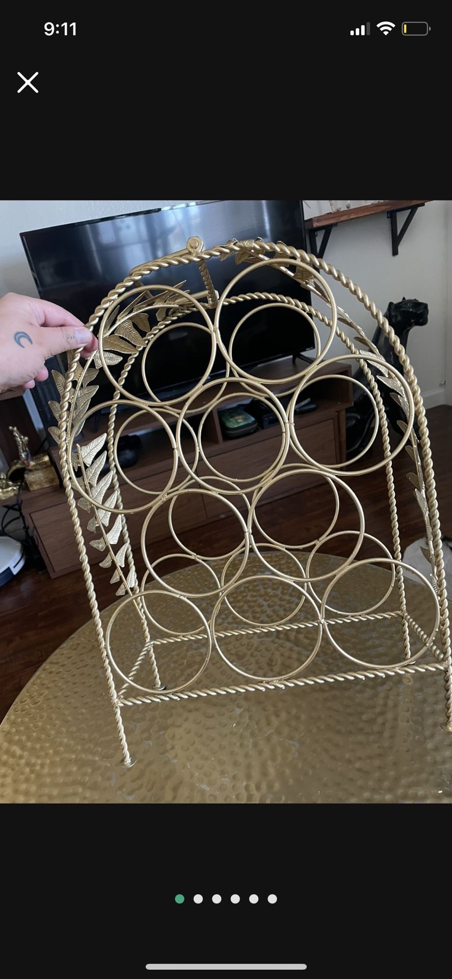 Gold mcm style floral leaf wine rack holder for bar cart