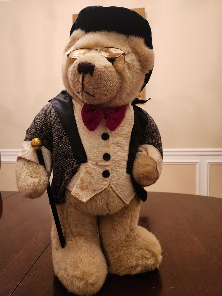 Victorian Dress Christmas Bear Greeter 21” Velveteen Top Hat Holly Sprig Bow Tie
