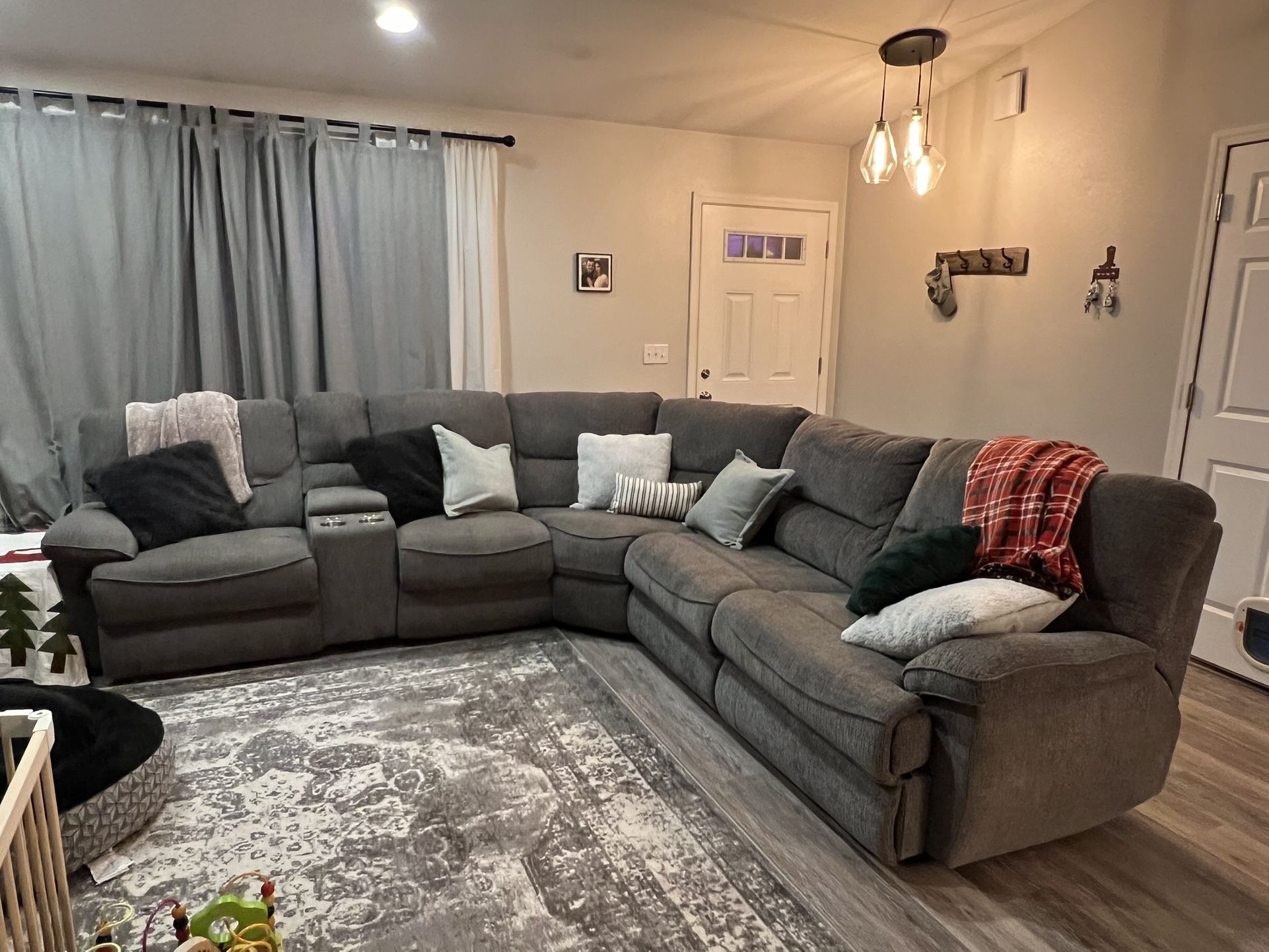 Includes: - pull out hide-a-bed (used only a handful of times, the cover is washed after every use.) - 2 working electric recliners -2 cup holders -2 working usb charging ports - hidden storage arm rest in between the recliners Also, - smoke free home - we do have a cat but our dogs are not allowed on the couch Still a lot of life left in this couch! We are moving and sadly this won’t fit in our new house. Prices to sell and open to offers! Every guest we have ever had said our couch was the most comfortable for napping! We are going to miss this couch. And I know you will love it. Bring help loading - it is heavy! Available after Christmas!