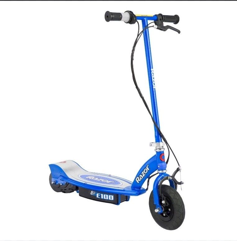 PRICE FLEXIBLE Electric Razor Scooter for kids with a kickstand and rechargeable battery. Product details: Kids can make their way around the block in style on this Razor e150 Electric Scooter. Boasting a chain-driven, high-torque motor and a handy twist-grip throttle, this cool ride is ideal for older kids and teens wanting a stylish way to zip around. The frame is constructed from steel to offer a solid foundation and long lasting durability. This kids electric scooter requires a small kickoff before starting and can reach top speeds of approximately 10 miles per hour. Included are the two 12-volt sealed lead acid batteries required for operation. Thanks to these long-life rechargeables, riders can cruise for up to 40 minutes on a single charge. The front sports an 8" pneumatic tire that helps deliver precise turns. The back has a 125mm urethane rear wheel and ABEC-5 bearings that provide a smooth ride. Equipped with a hand-operated front break, this scooter can easily be slowed down or stopped for maximum safety. Razor E150 24-Volt Electric Scooter, Multiple Colors:Chain-driven motorKids electric scooter requires two 12V sealed lead acid batteries (included)UL battery charger includedBatteries charge in 12 hoursContinuous run time: 40 minutesTwist-grip acceleration throttleTop speed: 10 mphHand-operated front brake125mm urethane rear wheel with ABEC-5 bearings8" pneumatic front tireSteel frame and forkRetractable kickstandMaximum rider weight: 120 lbsRazor scooter includes tools for easy assemblyBattery operated scooter dimensions: 32.5"L x 16"W x 36"H