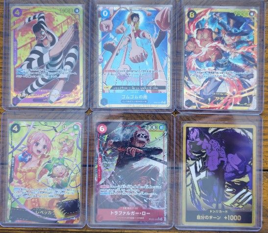 Luffy Event Parallel, Mr. 2 SEC, Sabo SEC, Rebecca Alt Art SR, Law SR Parallel, Lucci Gold Don