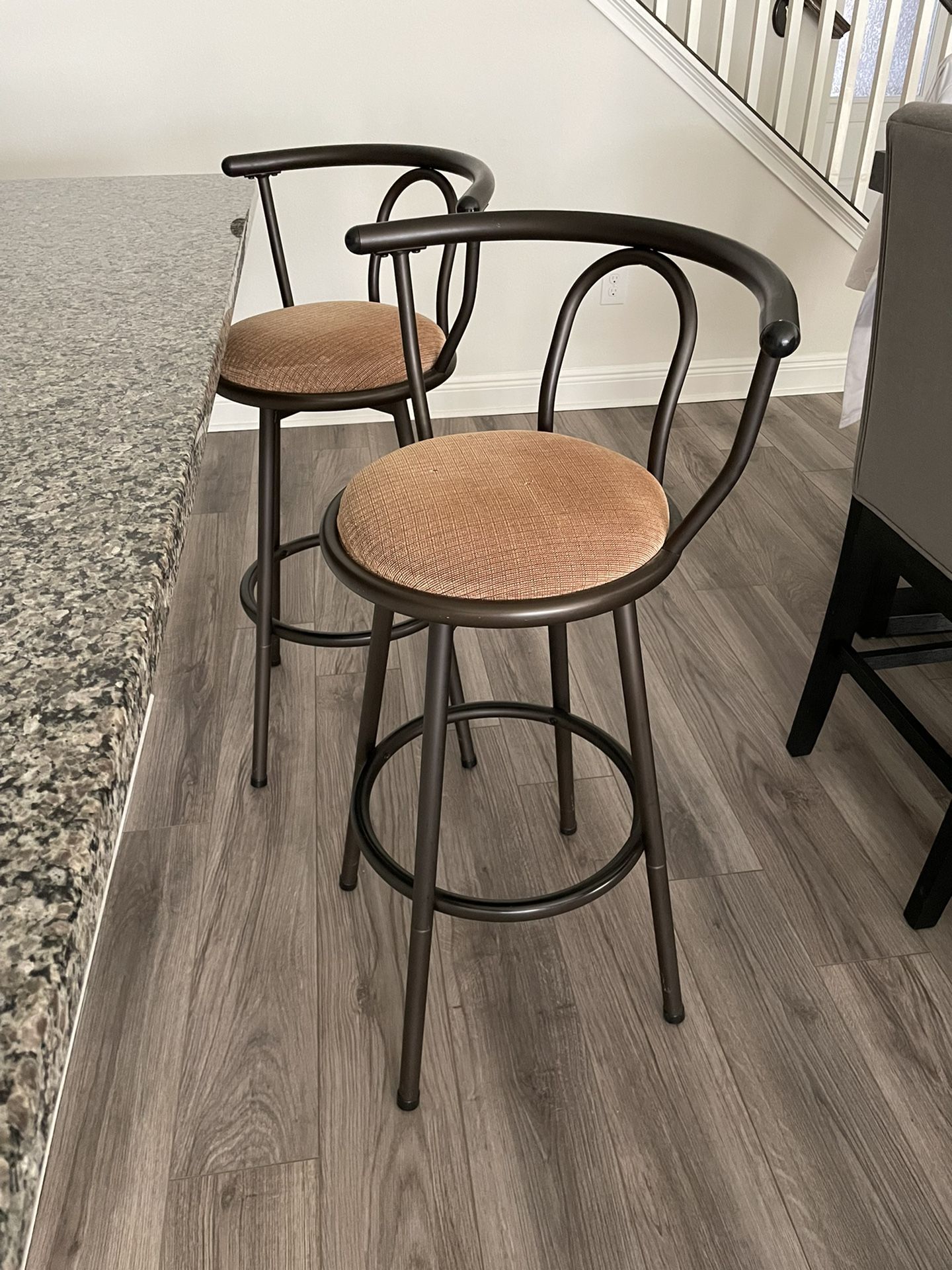 2 swivel counter height stools Normal wear and tear seen on the seats and shown in pictures Seat height is 28in