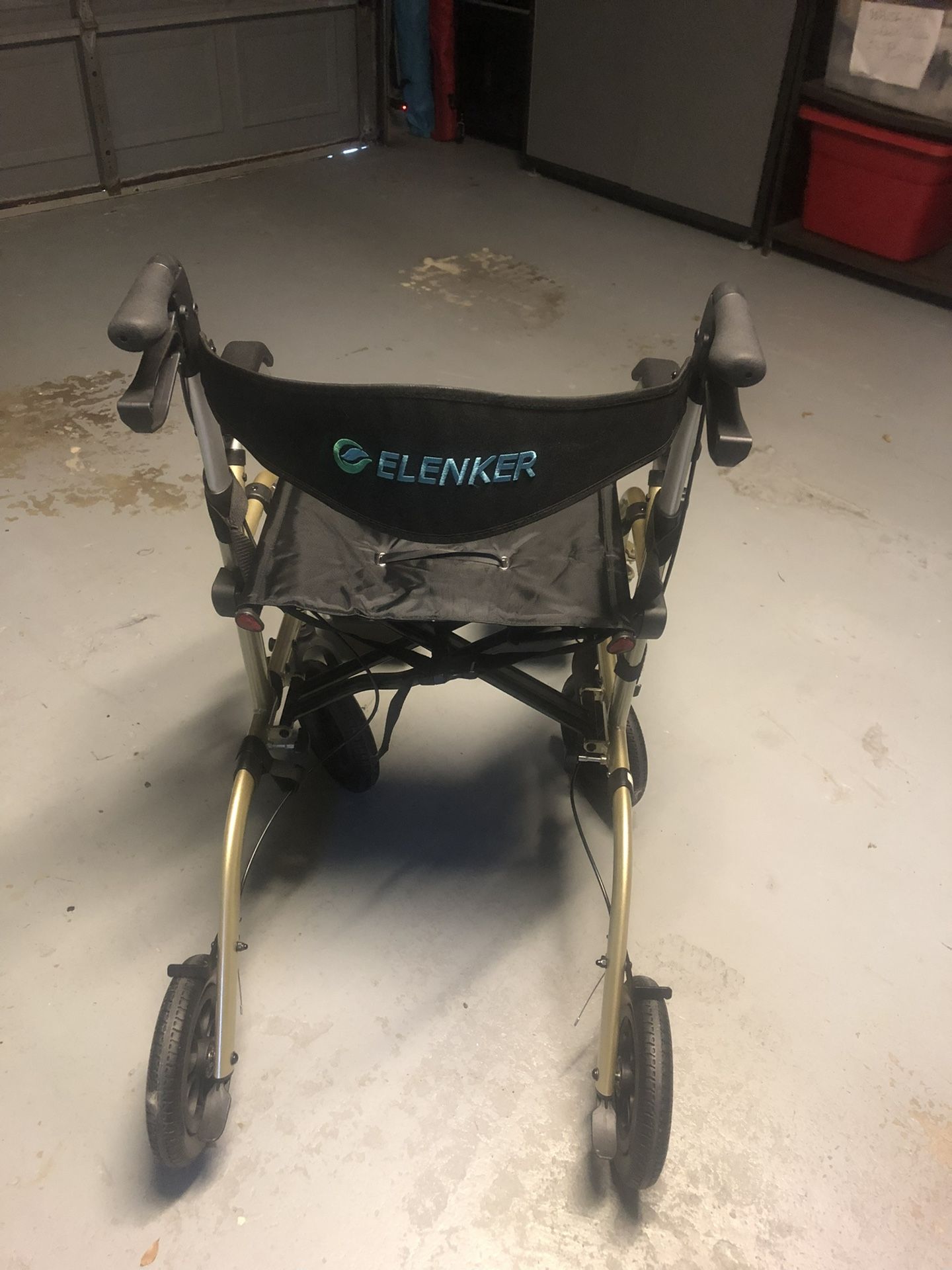 Elenker walker with seat. Brand new, never even used. Bought for a family member in need and they didn’t want it. So, price is OBO and can deliver for an extra fee.