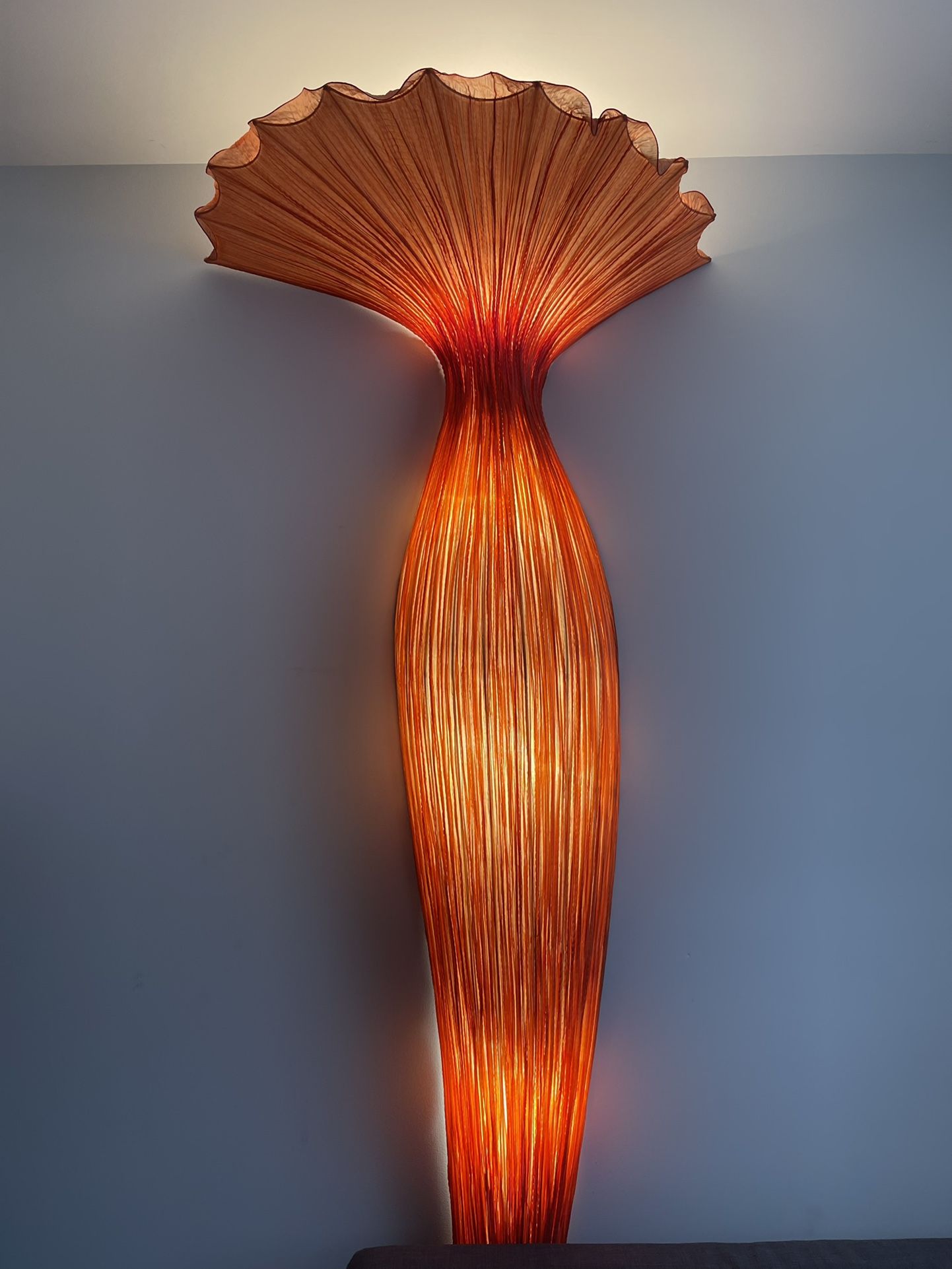 “EVENING GLORY” Wall Light Creator: Aqua Creations Designer: Ayala Serfaty Style: Organic modern Materials: Silk over metal Period: 21st Century, 1990s Original Cost: $7,484 Color: Rust Condition: Excellent (pre-owned) Height: 7 Feet Origin: Unknown (assumed Israel)