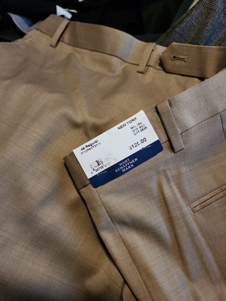 Brand new size 46 no tailored Hart Schaffner Marx dress slacks, flat front tan color retail price $125.