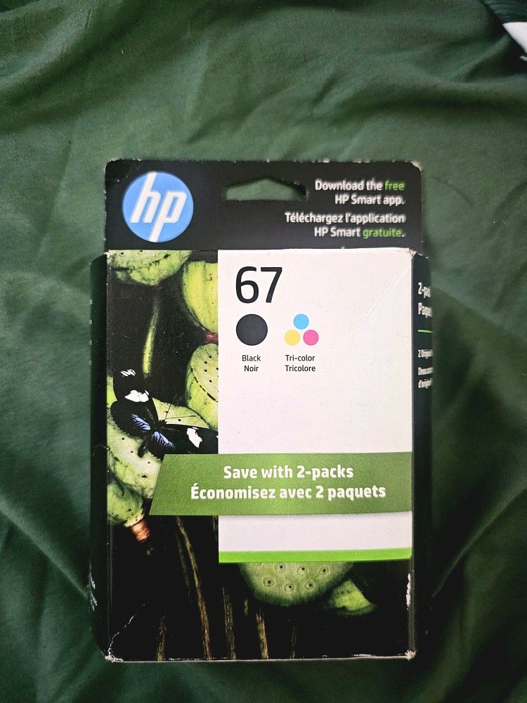 2-Pack HP 67 Black/Tri-color Printer Ink Unopened Box