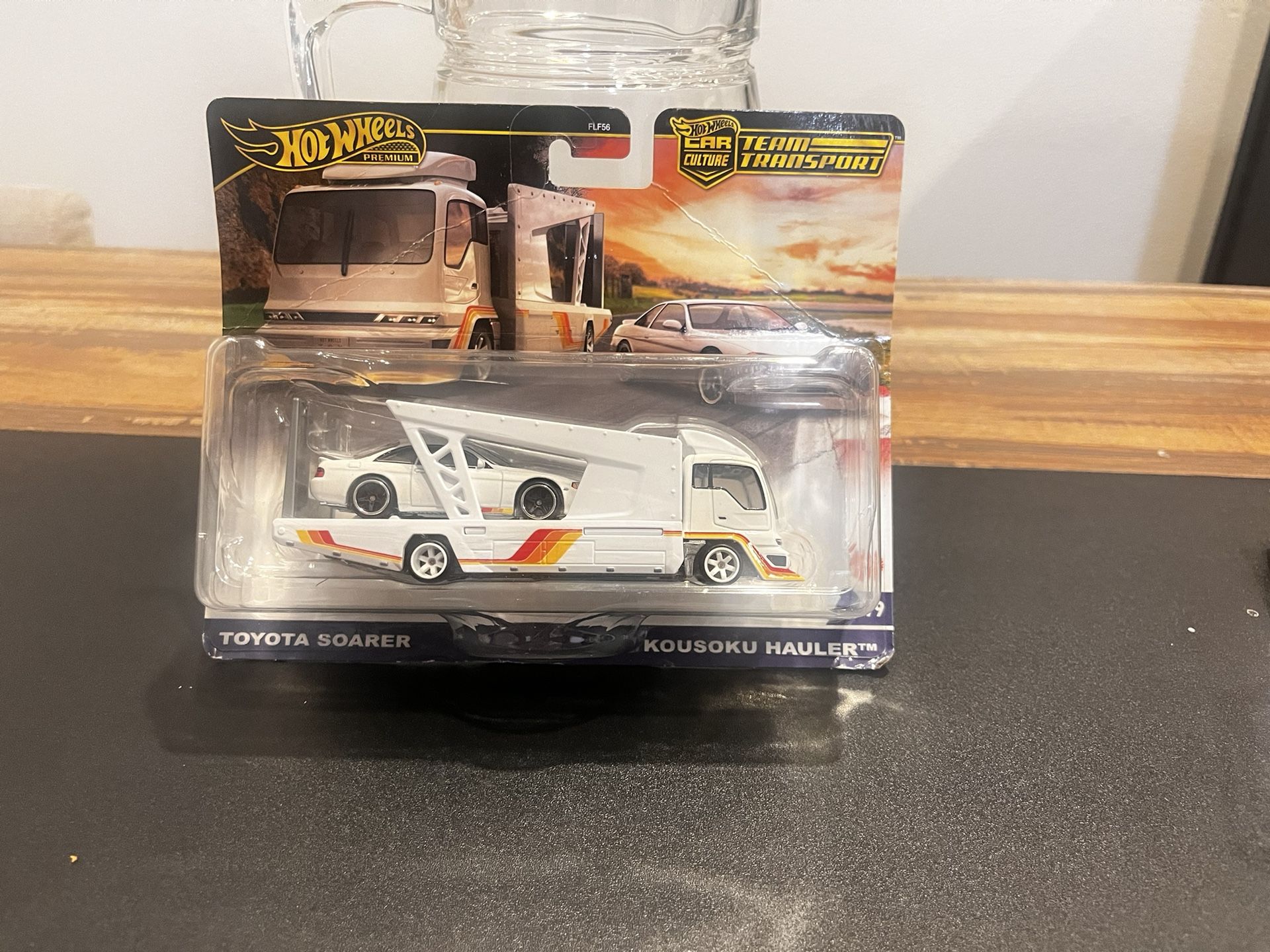 Toyota Soarer & Kousoku Hauler Hot Wheels Team Transport Box has some scratches and a wrinkle If ad is still up it’s still available No deliveries