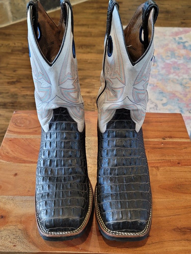 Double H Chocolate Caiman Print and Glacier Wide Square steel toe 10.5 EE