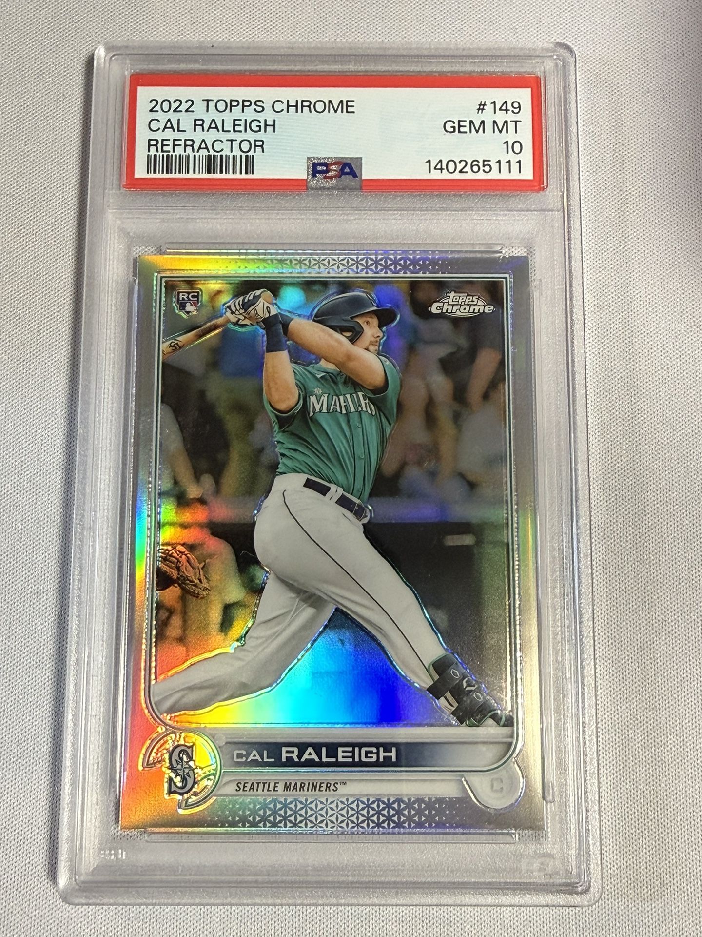 PSA 10 GEM MINT 🔥 2022 Topps Chrome Cal Raleigh Rookie Refractor #149 (PSA 10) Seattle Mariners 🟢🔵