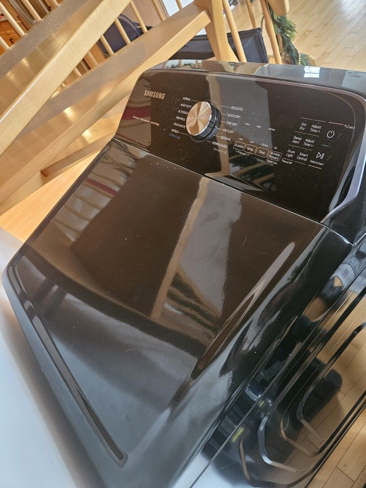 Used samsung vented dryer. Model number in pictures. Currently on sale new at bestbuy for 750 but originally 1100. This dryer was bought new in Feb 2025 and has been regularly used since, still in good condition. Depending on locations, I may or may not be able to deliver.