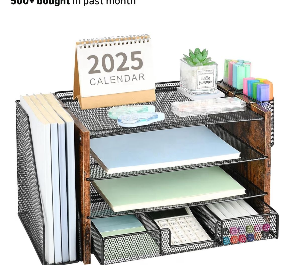 We accept Cash app and cash payment only #904 OPNICE Desk Organizer, 4-Tier Desktop File Organizer with Drawer and 2 Pen Holders, Office Desk Accessories, File Sorters, Workspace Organizers for Office Supplies(Brown Wood) 🎁【Multi-Functional Office Organization】Get your work area in order with the OPNICE Desk Organizer! Featuring 4 spacious trays, a vertical file organizer, 2 convenient hanging pen holders, and a sliding drawer, you can store all your office supplies, classify and organize them, and keep your desktop tidy 🎁【Easy Installation】Say goodbye to complicated assembly instructions and frustrating tools! Our desk organizers and accessories can be set up in just one minute without the need for any tools, allowing you to enjoy a hassle-free experience from start to finish