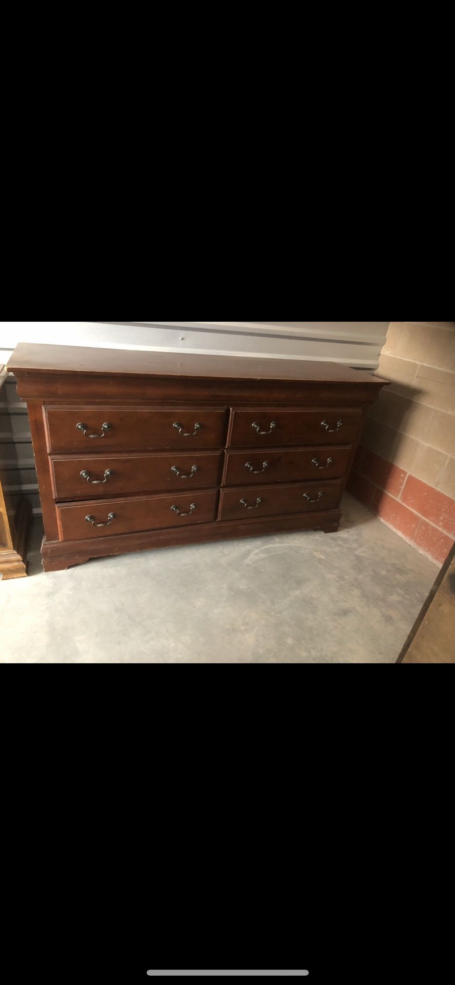 Good condition Solid wood Sturdy Dresser/6 Drawer Queen size bed frame: headboard, footboard, side boards, slats Brown color Pick up westside Delivery available