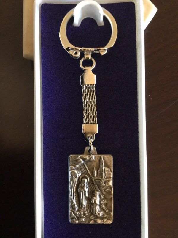 Beautiful Silver Keychain holder made in Italy. From the National Shrine Catholics Cathedral gift shop. ⛪️ Still in the box lovely engraving of religious picture. Please take a look at all the photos to see details.