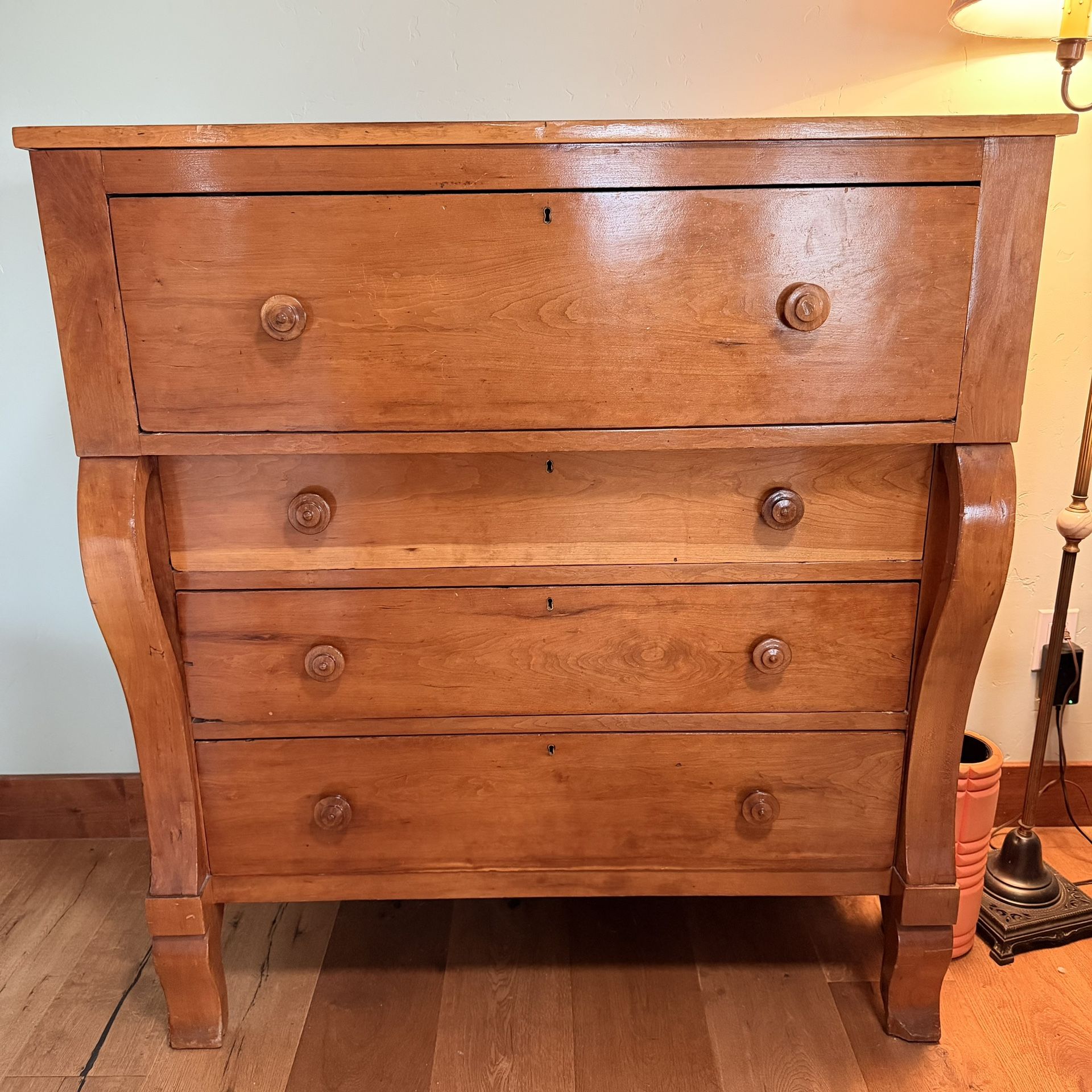 Antique 19th Century Solid Maple Wood Empire Style Four-Drawer Chest