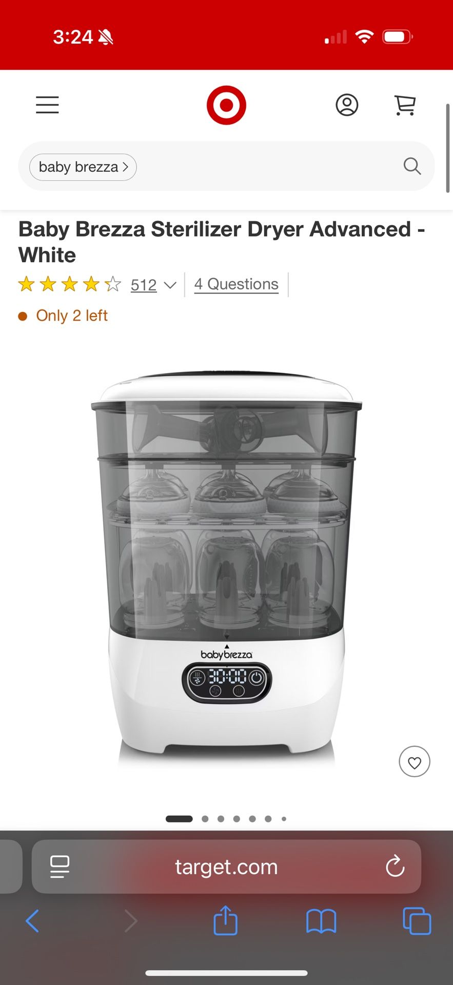 Lightly used Baby Brezza Sterilizer Dryer 2024 Model - White. We bought this back in July 2024 and used it for a year. It’s in great condition and comes with all the parts. Details from Target for 2025 model (only difference is the 2025 includes a HEPA filter and the 2024 doesn’t. All other functionality remains the same. Automatically Sterilizes and dries – All in 1 Easy Step: Compatible with bottles, all breast pump parts, pacifiers, teethers, sippy cups and other accessories from any brand; Dries in 30 min vs 45 min for others Kills 99.9% of Germs: Uses natural steam to eliminate 99.9% of harmful bacteria, mold & the yeast that causes thrush in only 10 minutes, then dries automatically with HEPA-filtered, germ-free air; Auto-shuts off when cycle is complete Largest Capacity: Holds 8 bottles, 2 full breast pump part sets and accessories from any brand, including glass bottles (others hold only 6 bottles Most Modular 3-Layer Design: Use 4 different ways to meet your needs – Only Sterilizer Dryer with large lower bin, shorter upper bin and unique accessory tray 4 Modes, 3 Dryer Settings & Digital Countdown Timer: Choose from 4 functions (Sterilizer & Dryer, Sterilizer Only, Dryer Only or Storage Rack) & 3 dryer settings (30, 45, or 60 min) using LCD Control Panel; Digital countdown timer shows time left in cycle 48 Hour Sterile, Dry Storage: Products remain sterilized for 48 hours when left inside (24 hours longer than others) Includes HEPA filter; Non-toxic stainless steel heating plate protects against rust & mineral scale; 1 year limited warranty (not valid if shipped or used outside the US or if another brand of replacement part not made by Baby Brezza is used) Description Baby Brezza One Step Sterilizer Dryer Advanced automatically sterilizes, then dries 33% faster. It uses natural steam to kill 99.9% of harmful bacteria, mold and the yeast that causes thrush, then dries with 95% germ-free, HEPA-filtered air. Products stay sterilized inside for up to 48 hours. It has the largest capacity - holding 8 bottles, 2 full pump parts sets (including wearable pump parts) and accessories from any brand. Compatible with plastic, silicone and glass baby bottles or accessories. Plus it's modular, so you can use it 4 different ways. Choose from 4 functions (Sterilize & Dry, Sterilize Only, Dry Only, or Storage Rack) using the LCD control panel. The digital display also features a countdown timer. 1 year limited warranty (not valid if shipped or used outside the US or if another brand of replacement part not made by Baby Brezza is used).