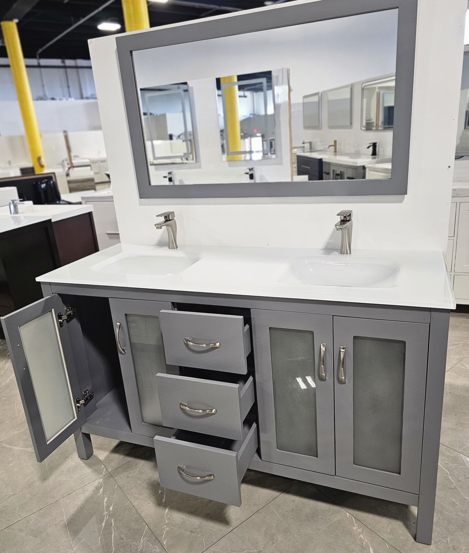 Bathroom Vanity 60β From $799 We sell !!! π’ Bathroom vanities ,Custom bathroom vanity , bathroom cabinets , kitchen q , marble top, quartz top, ceramic sink , onyx top , Sink ,Vessel ,Mirror ,Led mirror, Bathroom faucet , Kitchen faucet ,Toilet, free standing Bathtub , Kitchen ,Shower sets ,shower head , Shower panels , hand shower, Tiles , bathroom accessories , handles . And more .......