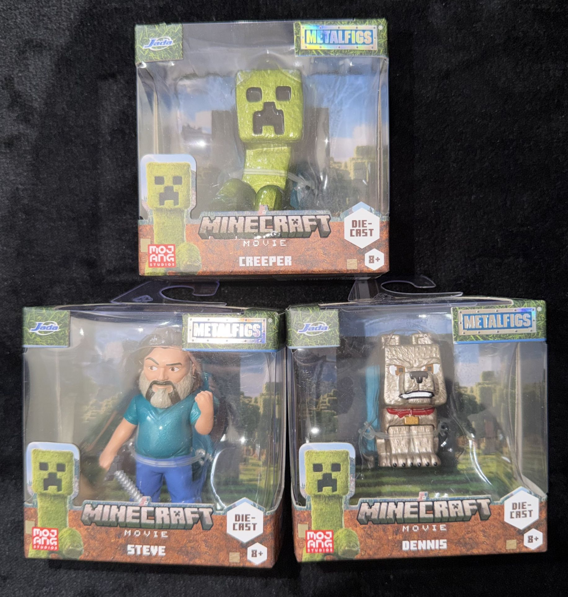 Minecraft Movie Metalfigs 2.5 Inch Collectible Diecast Figures / Toys Creeper, Steve, Dennis