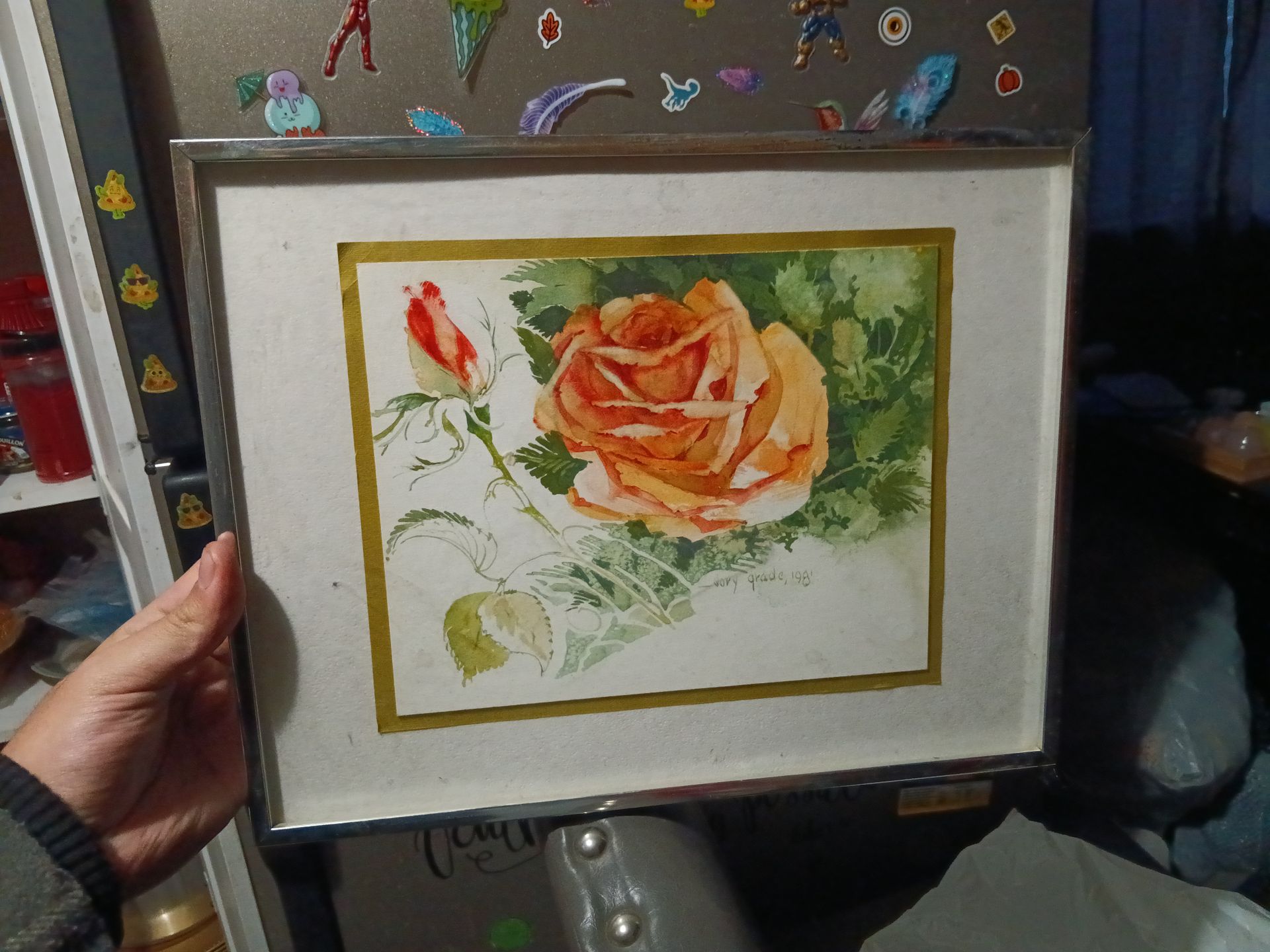 1980s rose painting metal frame