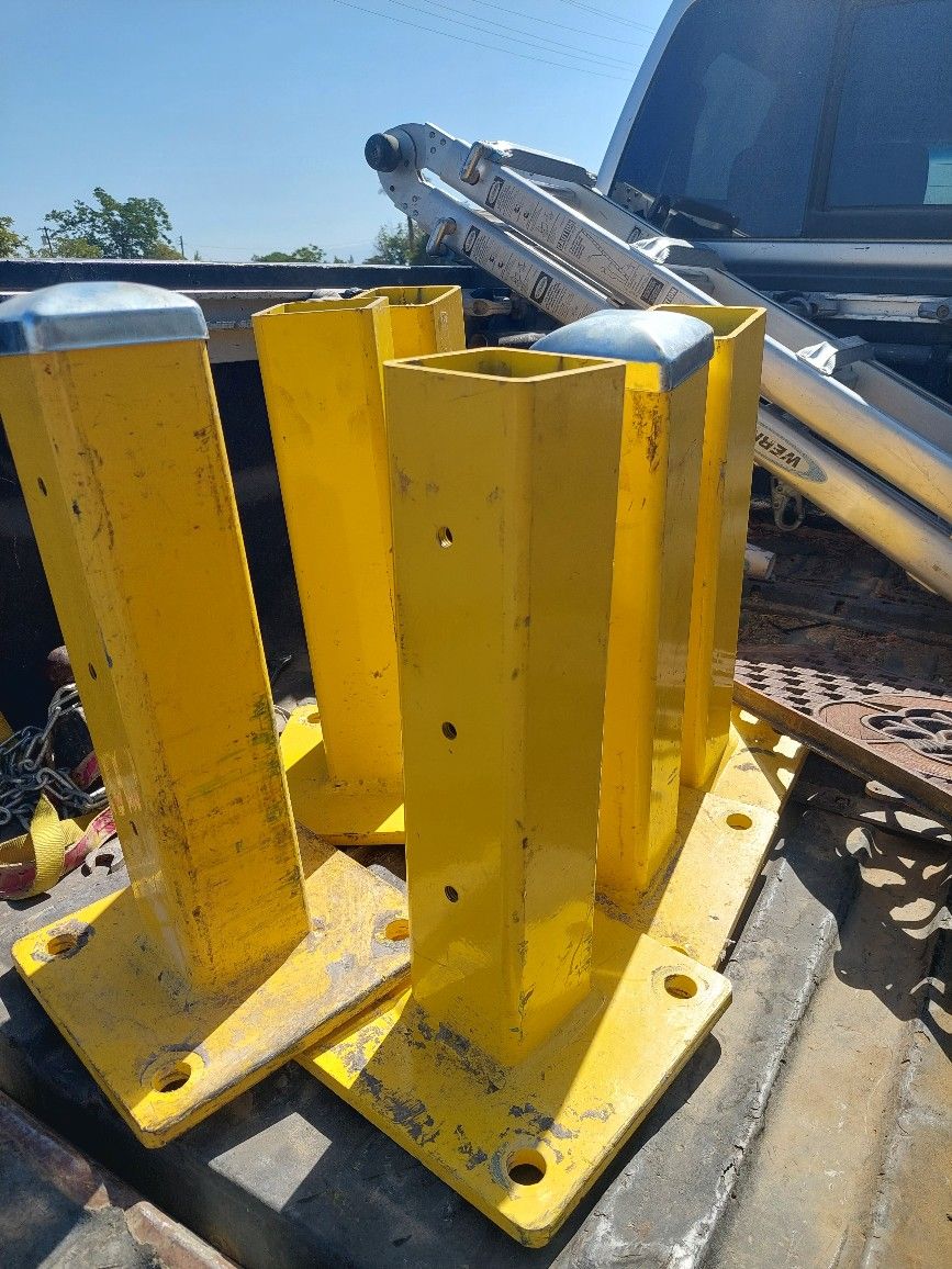 Steel bumper post or light pole base 4x4 1/4 welded to 10x10 1/2 4 hole plate 40$ each, easy to extend longer