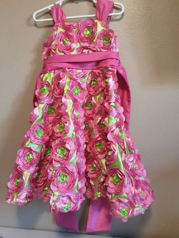 GIRLS DRESS SIZE 4T/4, RARE EDITIONS PINK/GREEN DRESS WITH CRINOLINE (FREE LOCAL PICK UP)