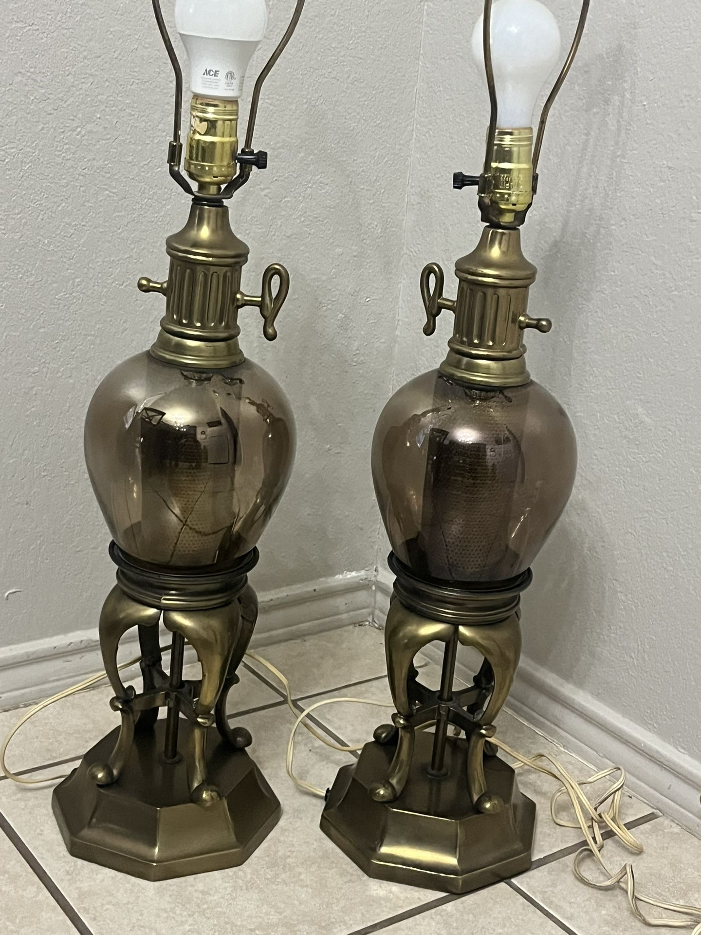 VTG Rare Tin And Luster Glass -Faux Gas -Table Lamps set Unshaded