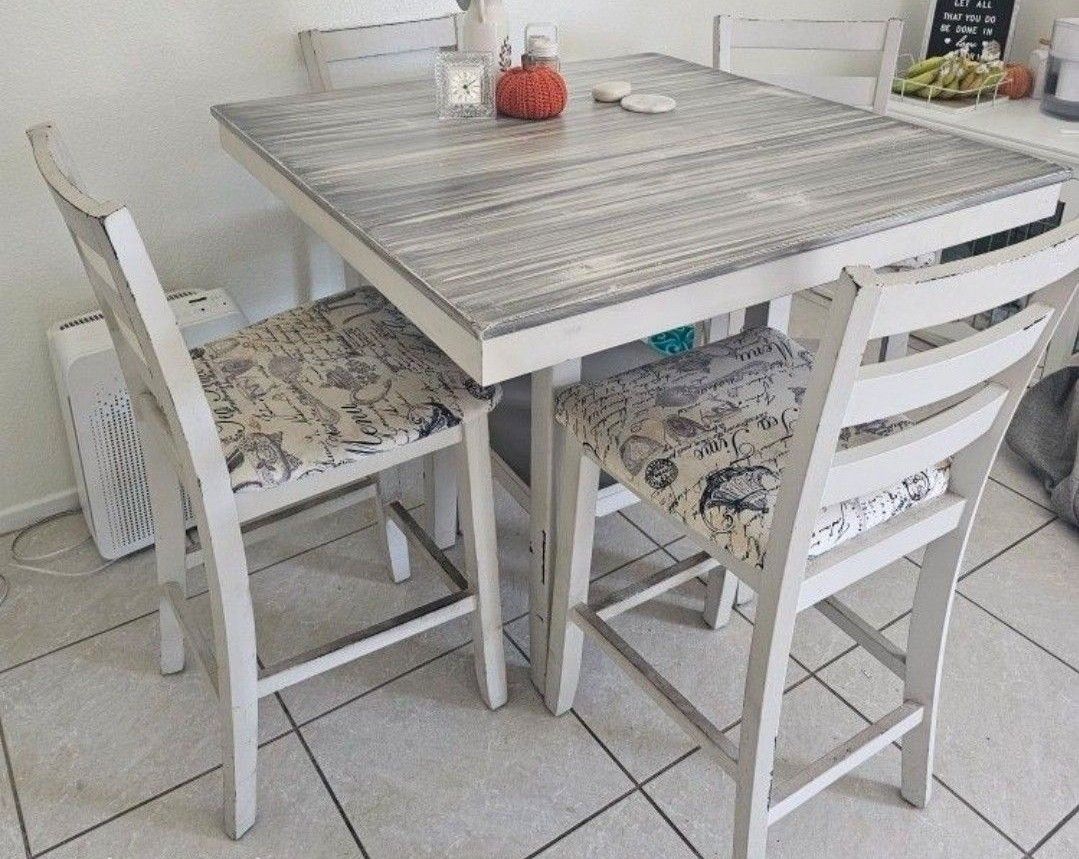 Grey and white dining table and chairs. $150 firm Pick up only.
