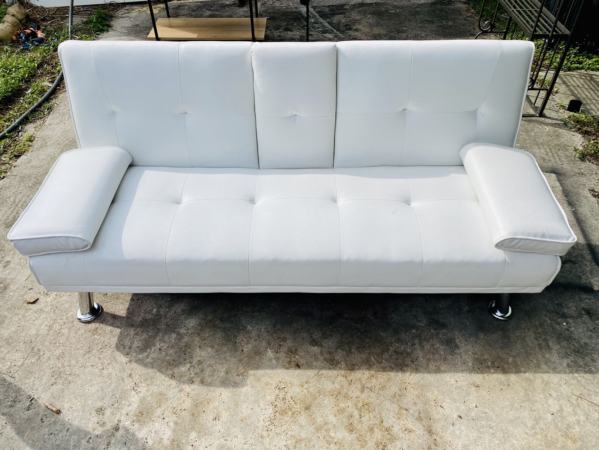 Beatiful White Leather Couch / Day Bed / Futon Very Modern And Comfy PAID $650