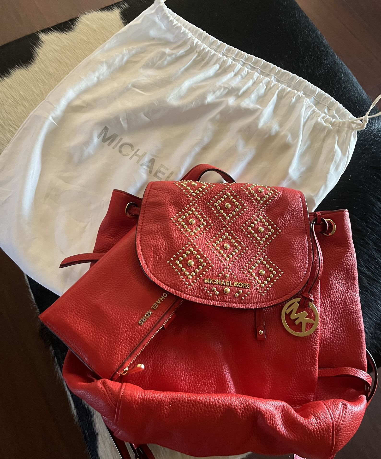Michael Kors Riley Large Studded Pebble Leather Backpack Dark Sangria