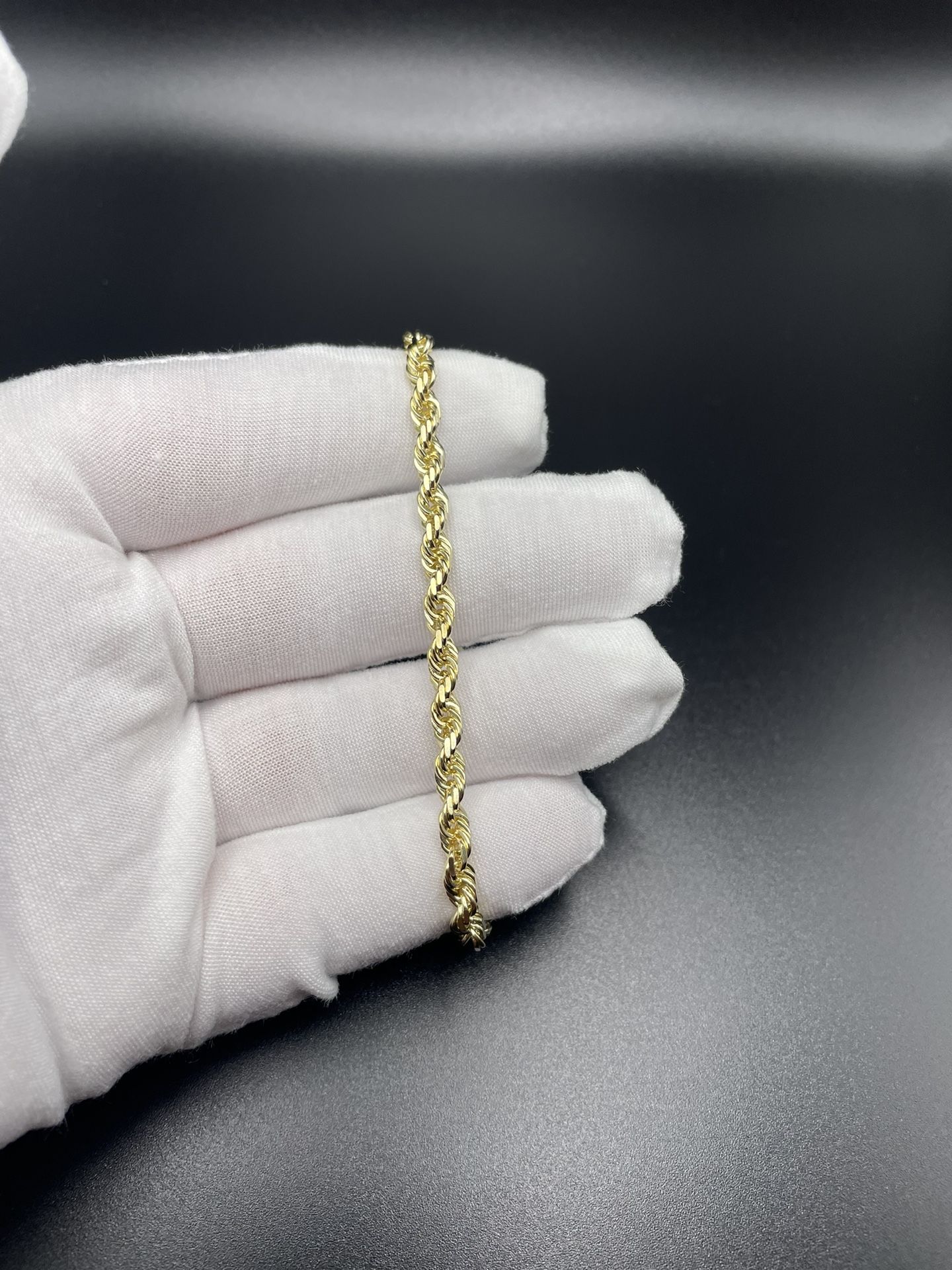 Classic, 8” solid 10K yellow gold diamond cut rope bracelet. This chain is approximately 4.7mm and the weight is approximately 11.4g. This item is real gold, not plated or filled.