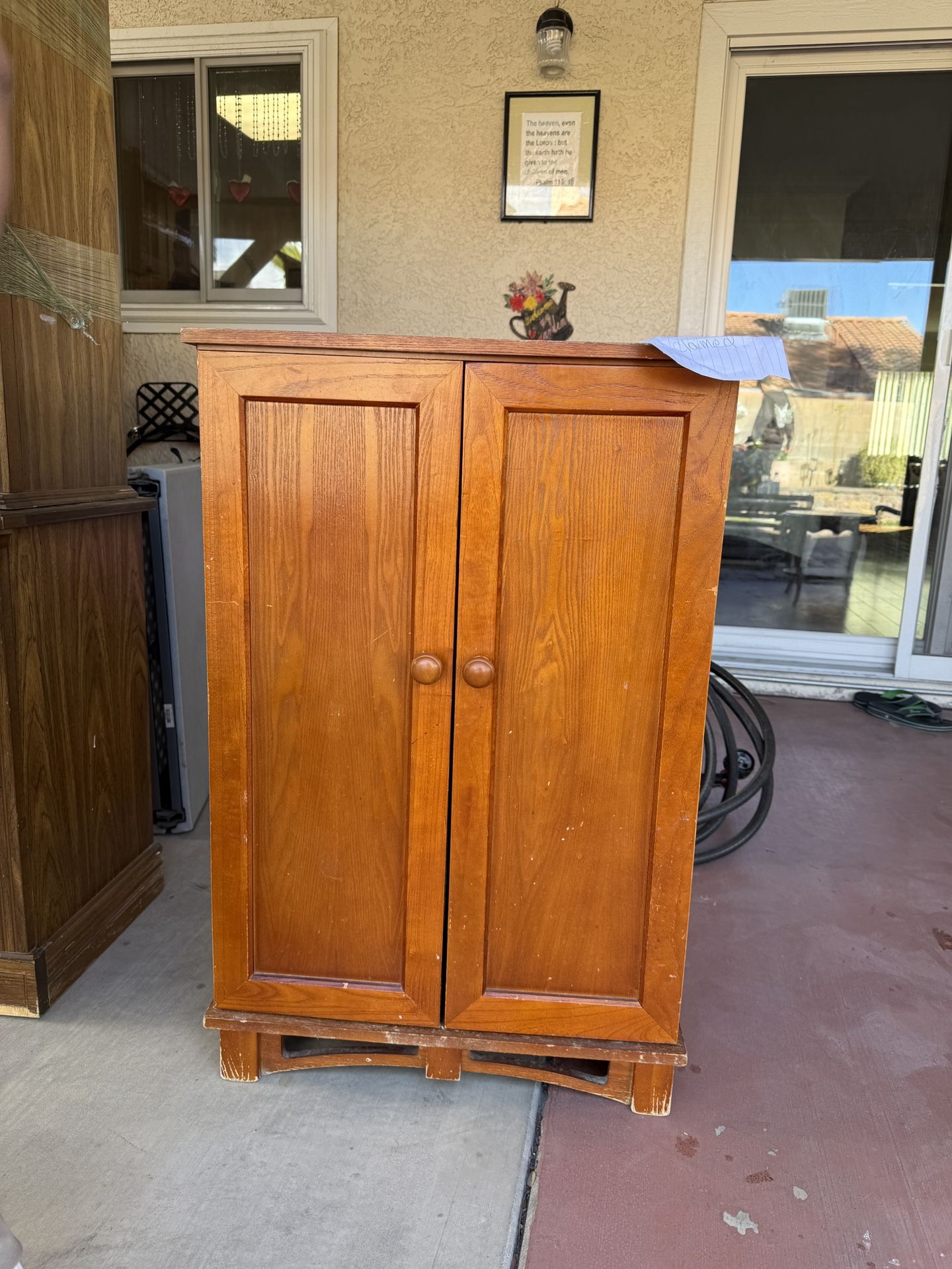 Solid Wood Cabinet / Storage Armoire β Great Condition Beautiful solid wood cabinet with a warm cherry/oak finish. This piece is very sturdy and well-built, not particle board. Features double doors that open to reveal multiple shelves on both sides plus a larger center storage area, making it perfect for: Storage cabinet Pantry Entryway or hallway storage Office or craft supplies Media or general household organization Details: Solid wood construction Rich natural wood finish Double doors with matching wood knobs Interior shelving on both doors + center shelf Stable base, stands firmly Clean overall condition with normal light wear from use (see photos) This is a quality piece with lots of storage and character. Ready for pickup. π Pickup only