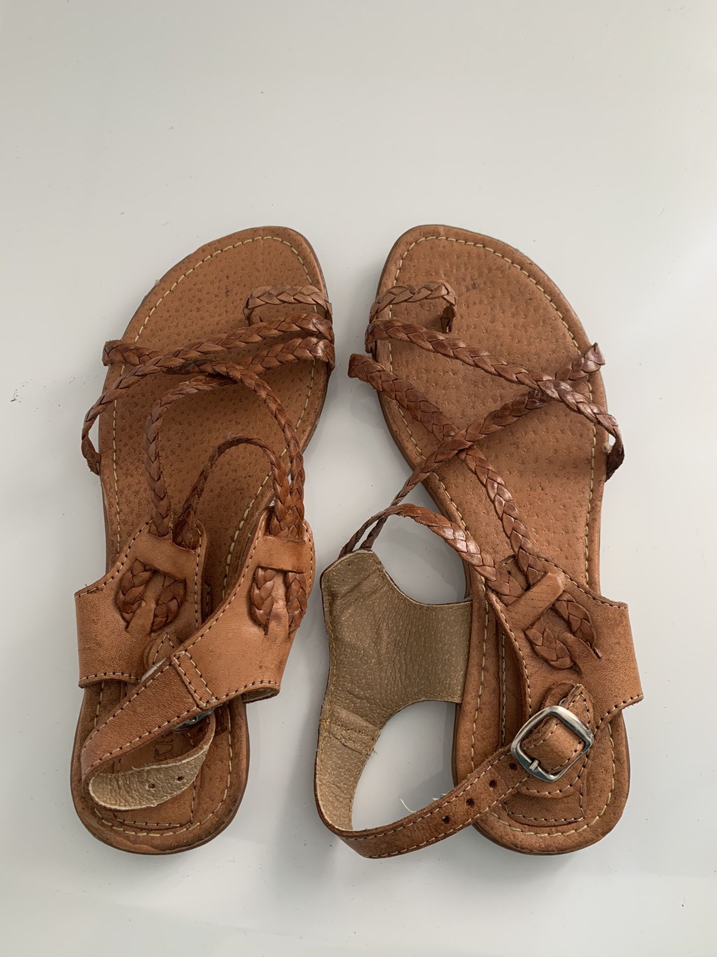 Real leather braided strappy sandals Made in Mexico Originally wear a size 8.5 but these are a 9 because they run small $25 OBO