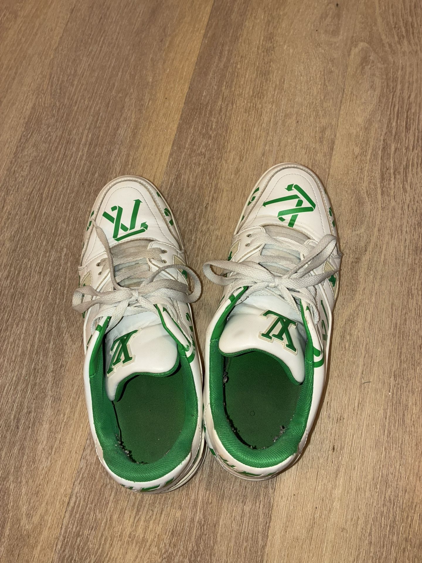 Louis Vuitton White & Green Low-Top Sneakers – Monogram Logo Design