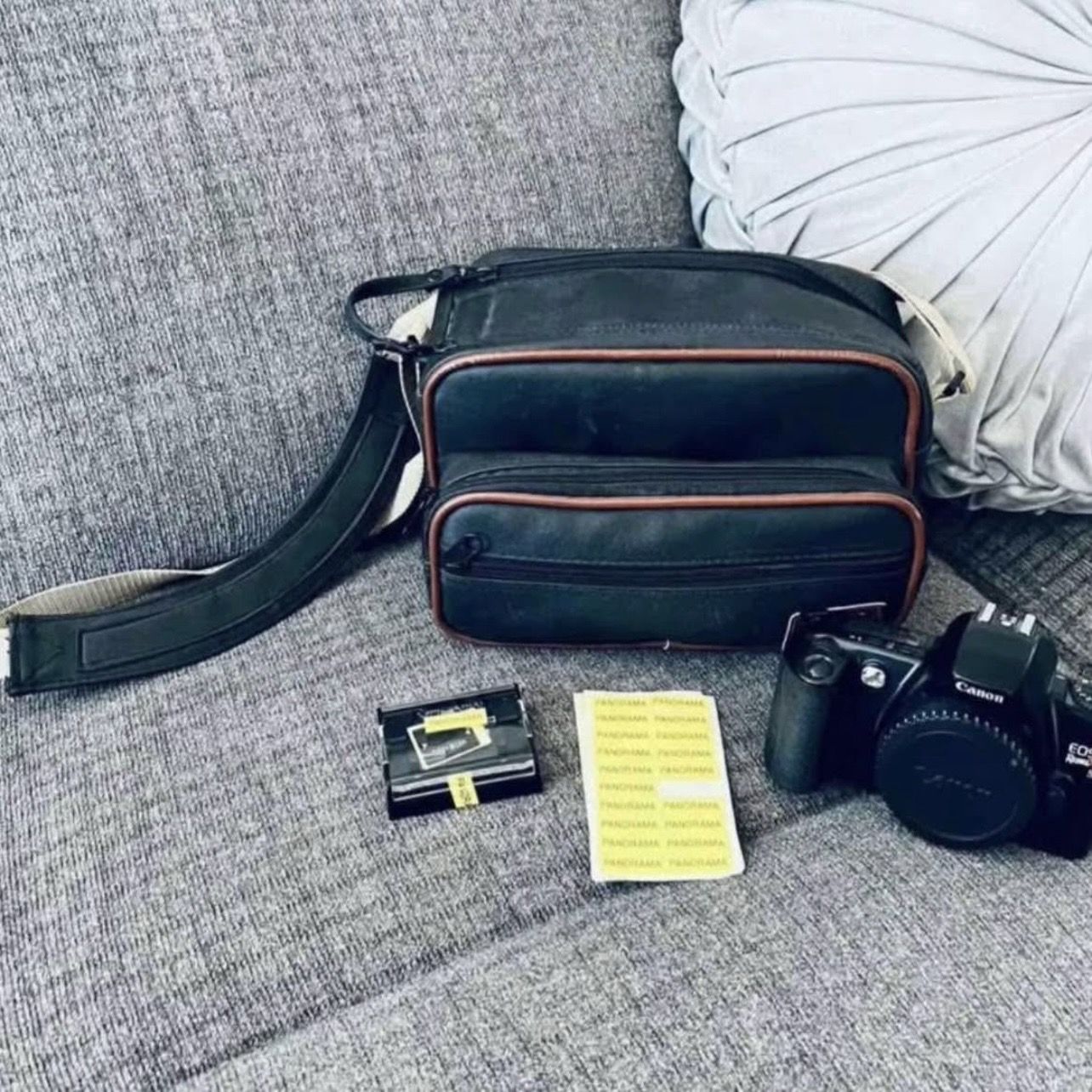 Click 👉🏼 SEE MORE👈🏼 for full description. A great camera bundle which includes a Canon EOS Rebel X S 35mm Film Camera (Body Only - No Lens) w a Minolta Panorama Adapter Holder & a Case. This entry level, light and small Rebel X has a pop-up flash. CAMERA FEATURES INCLUDE: Auto focus with manual override, AF lock, AF auxiliary light. 3 point Multi-Wide Autofocus system links focus points to metering pattern. Manual metering with aperture priority AE, shutter priority AE and program AE (with functions including Intelligent Program AE, Auto Depth AE (formerly called DOF AE), Green Zone quick control dial for full auto modes and Flash AE (A-TTL program flash AE with optional 430EZ and 300EZ; and TTL program flash with built-in flash and optional 200E and ML-3). Metering patterns: 6 zone evaluative, centerweighted averaging and 9.5% partial of the central image area. LCD metering display in VF and on top panel, exp. comp., AE lock, dedicated hot shoe. Built-in pop-up flash: GN 39, 28mm lens coverage, red eye reduction. Shutter speed range 30 sec to 1/2000 plus B, flash sync at 1/90, self timer, auto DX ISO range 25-5000 with manual override (manual ISO range 6-6400), built-in motordrive provides auto film advance (prewind system) and rewind, mid-roll rewind possible, multi exp capability. Includes the Minolta Panorama Adapter Holder set 1 for 7xi, 7000i w stickers Plus a camera & accessories black case! Preowned *Comes from a smoke free home *Cash only *No returns or exchanges - All sales final #filmcamera #35mm #canonrebel #panoramaadapter