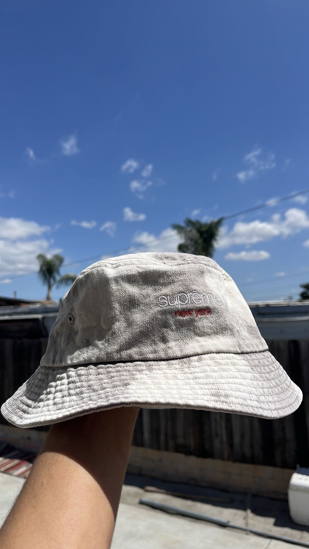 Supreme bucket hat, grey and white,denim crusher bleached