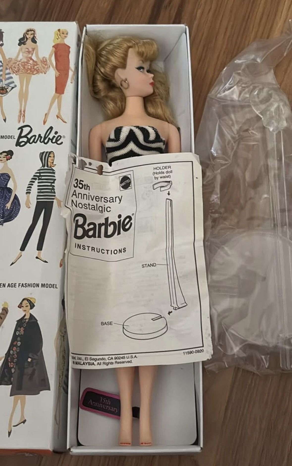 35th Anniversary Nostalgic Barbie Doll Stock NO. 850 *WITH STAND* Blond Ponytail