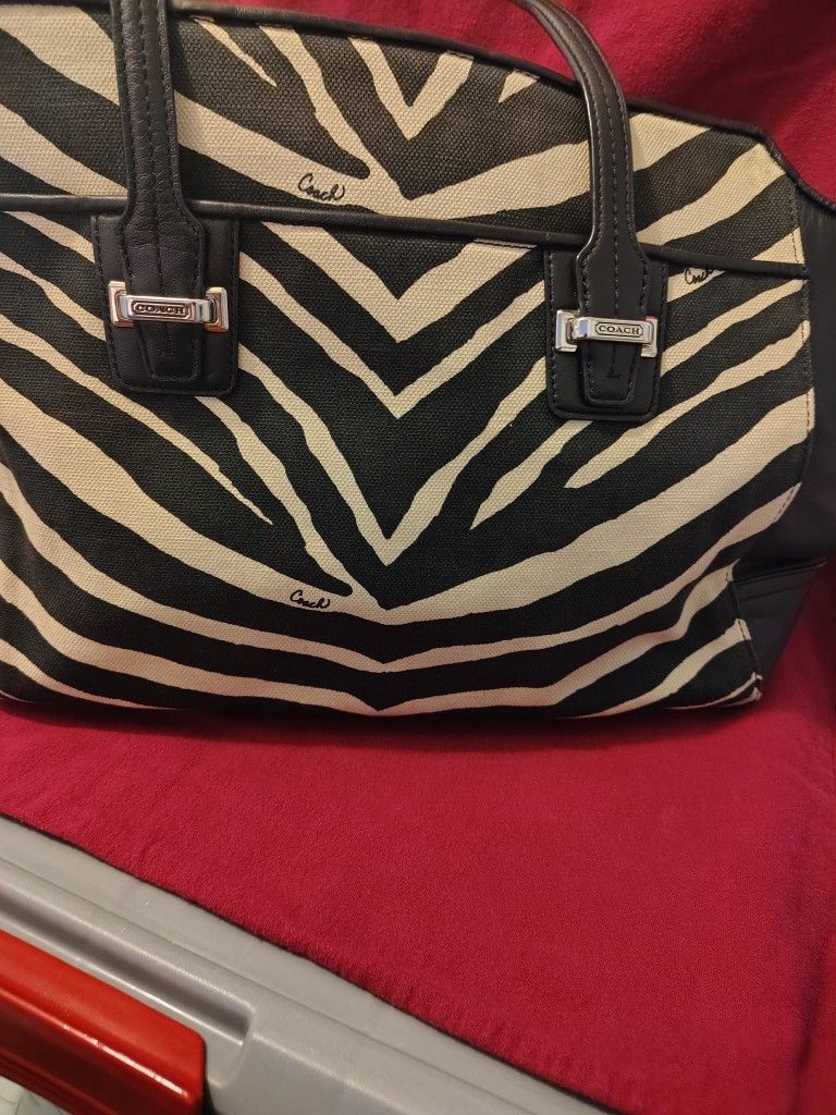 COACH Black & Cream Zebra Print Leather & Canvas Pre-owned Genuine COACH Excellent condition COACH MSRP:$458 Online on other platforms sold: $125 Asking $80 JUST DISCOUNTED NOW ASKING $50