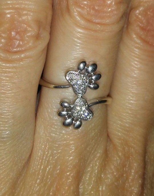 Up for sale is this like new whimsical ring featuring two paws πΎ containing genuine Diamonds π. It is stamped .925 solid sterling silver. This ring is a SIZE 6 1/2 but is somewhat adjustable due to how it's made. It's super cute. It retails for $285. From our smoke-free home.
