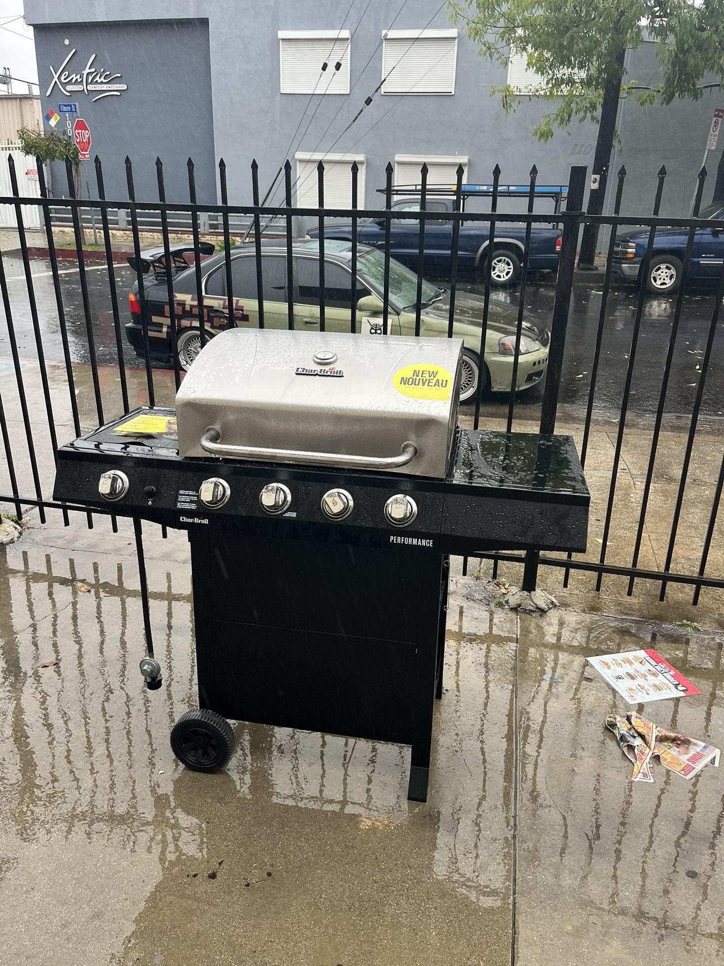 Precio negociable!! Tengo disponible este bonito asador para usarse con gas propane , tiene 4 quemadores principales y 1 parrilla extra en el lado Incluye 1 tanque de gas propano lleno El asador tiene llantas para moverse facil esta limpio y listo para usarse. BBQ grill is in good condition everything works fine Include 1 propane tank full Is clean and ready to use it 4 main burners and 1 extra burner in the side