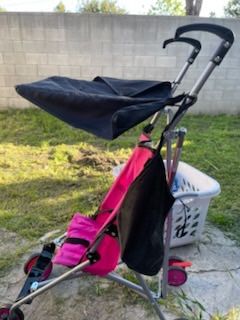 Pink and black stroller very sturdy includes the umbrella for shade and the back bag for storage π©·ππΌ