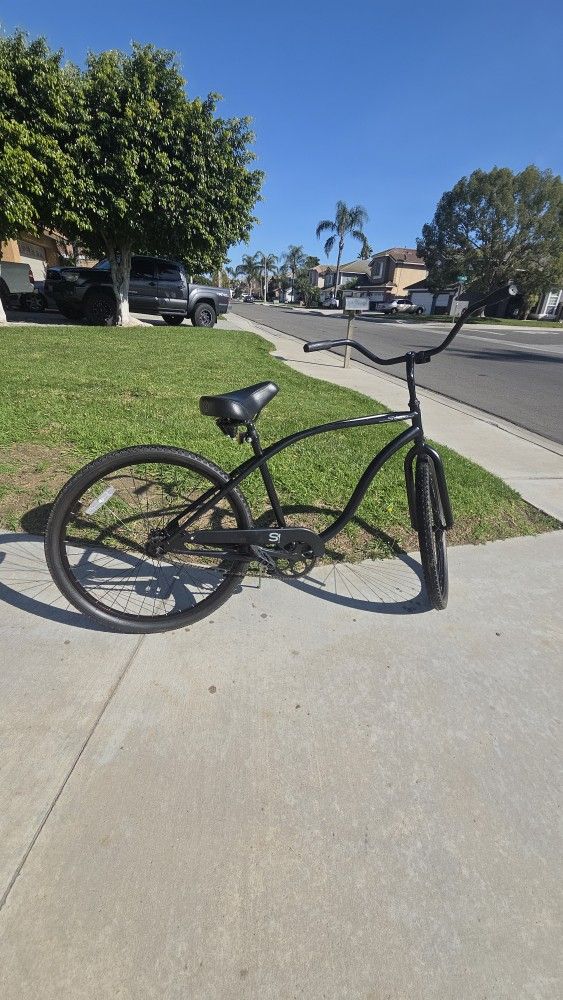 Schwinn S1 Cruiser Bike - Will meet at Ontario Police Station on Archibald - Near new - Mild scratches - Inner tubes hold air - All bolts tightened - Chain lubed - Mounting points for rear basket and fenders - Grips intact - Includes reflectors - Fits riders 5'4" - 5'9" - Perfect for flat commutes and paved beach riding - Price negotiable