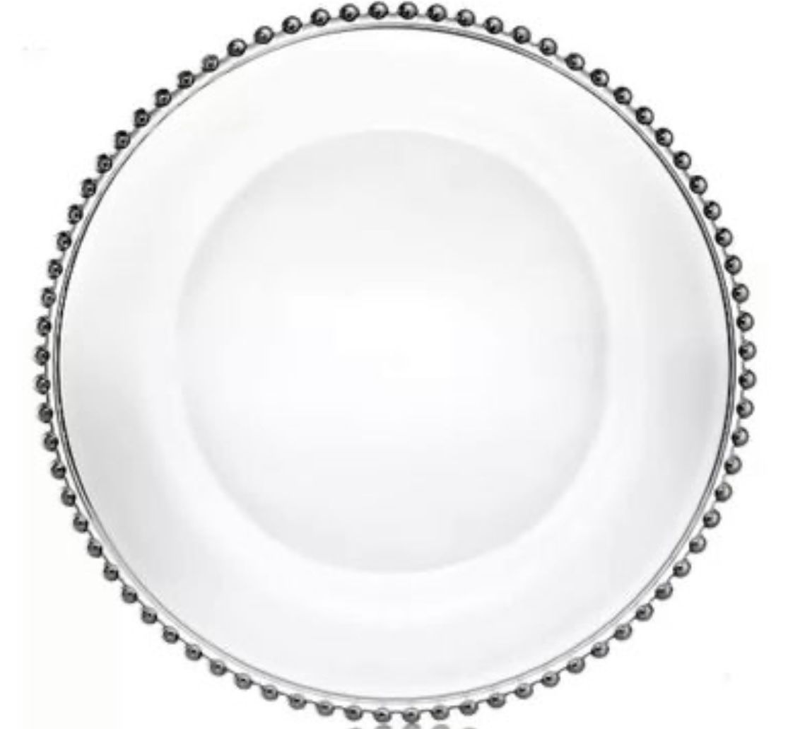 Clear crystal charger plate with silver beaded. Perfect for elegant events . $9 each