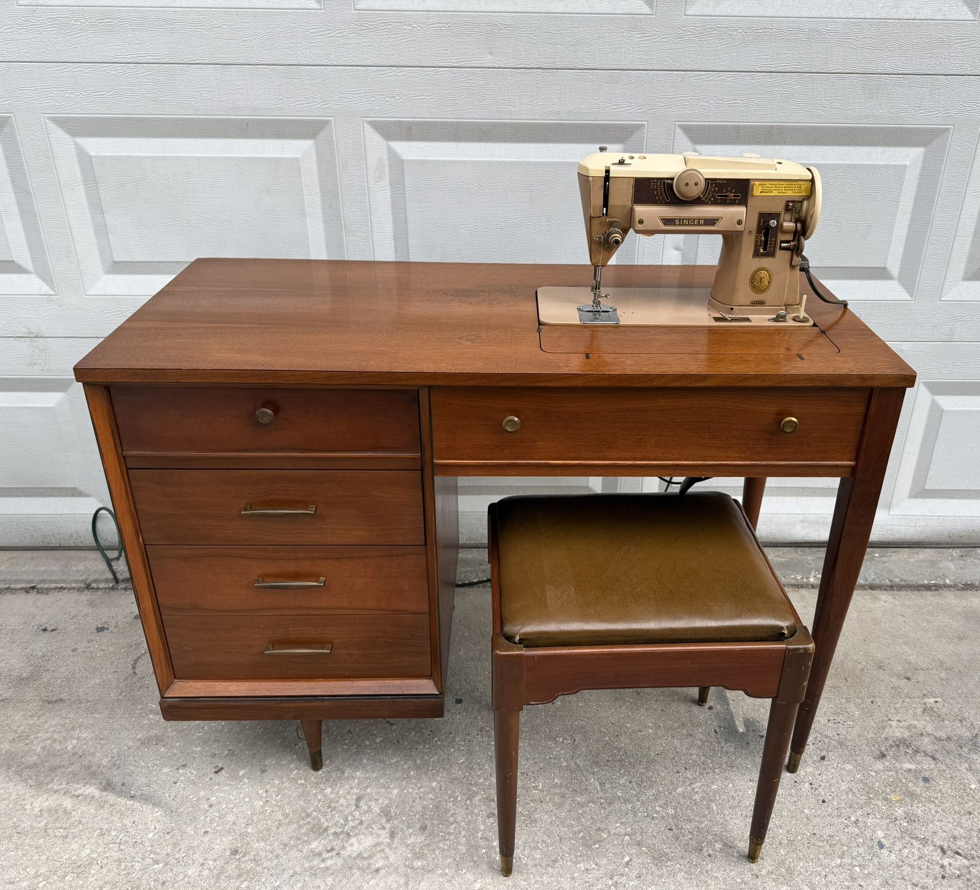 Vintage MCM Desk with Singer 401a Sewing Machine