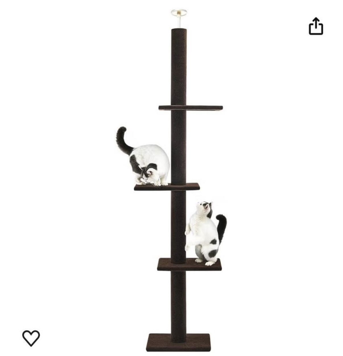 Brand new Cat Tree Floor to Ceiling 90-108". Tall Cat Tree Carpet Cat Tower Kitten Tree Sisal Scratching Post and Mat Cat Pole for Indoor Cats. Color: Dark brown. Assembly required. New in box.
