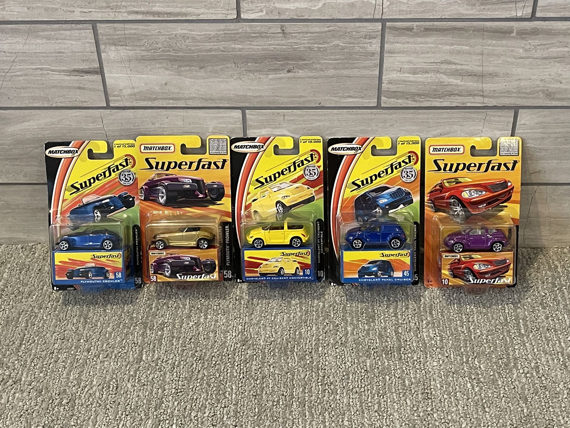 Early 2000’s Matchbox Superfast All Chrysler cars (5 in total) Brand new, factory sealed Some cards are bowed a bit and have a few bent edges $40 for the whole lot