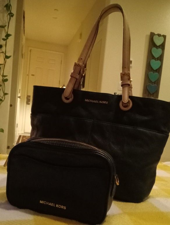 Michael Kors Soft Pebbled Leather Purse and Bag. Black with Gold Hardware